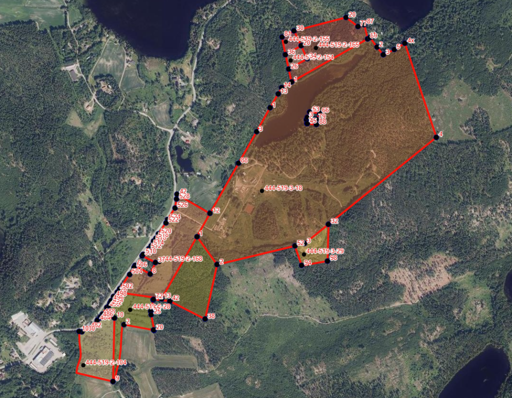 Kiinteistöt: Huhtamäki 444-519-3-28, Rinnepelto 444-519-2-104, Mustikka 444-519-2-154, Puolukka 444-519-2-155, Alhonkulma 444-519-2-165, Ternaala 444-519-2-168, Alhonhuippu 444-519-3-29 ja Alho 444-519-3-18. Tarkemmat tiedot ilmenevät laadituista myyntiesiteistä.